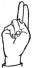 На ћирилици написано КОСТАДИН ЦУКИЋ састоји се из 13 слова [?]. Исписано ћириличном једноручном азбуком за глувонеме: